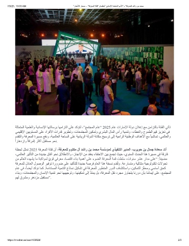 7/9/25, 10:03 AM “رﺎﺑﺧﻸﻟ رﺎﺑﺳﻣ – ”ﺔﻓرﻌﻣﻟا ﺔﱠﻣﻗ“ نﺎﻣظﻧُﯾ ”ﻲﺋﺎﻣﻧﻹا ةدﺣﺗﻣﻟا مﻣﻷا”و ”ﺔﻓرﻌﻣﻠﻟ دﺷار نﺑ دﻣﺣﻣ