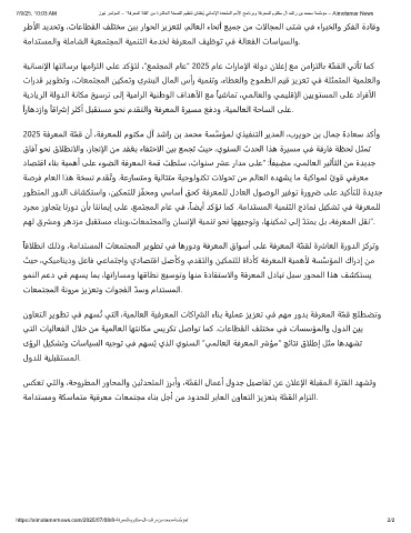 ﺔﻴﻧﺎﺴﻧإلا ﺎﻬﺘﻟﺎﺳﺮﺑ ﺎﻬﻣاﺰﺘﻟا ﻰﻠﻋ ﺪﻛﺆﺘﻟ ،”ﻊﻤﺘﺠﻤﻟا مﺎﻋ“ 2025 مﺎﻋ تارﺎﻣإلا ﺔﻟود نالﻋإ ﻊﻣ ﻦﻣاﺰﺘﻟﺎﺑ ﺔ ﱠ ﻤﻘﻟا ﻲﺗﺄﺗ ﺎﻤﻛ