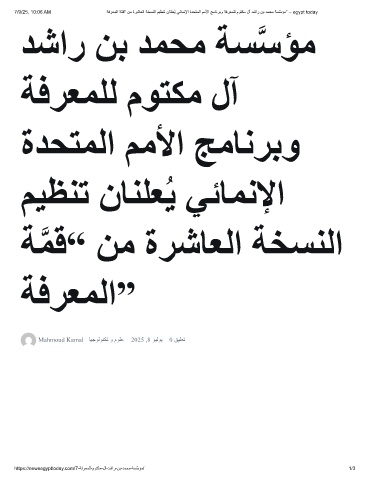 7/9/25, 10:06 AM ﺔﻓرﻌﻣﻟا ﺔﱠﻣﻗ“ نﻣ ةرﺷﺎﻌﻟا ﺔﺧﺳﻧﻟا مﯾظﻧﺗ نﺎﻧﻠﻌُﯾ ﻲﺋﺎﻣﻧﻹا ةدﺣﺗﻣﻟا مﻣﻷا ﺞﻣﺎﻧرﺑو ﺔﻓرﻌﻣﻠﻟ موﺗﻛﻣ لآ دﺷار نﺑ دﻣﺣﻣ ﺔﺳﱠﺳؤﻣ” – egypt today