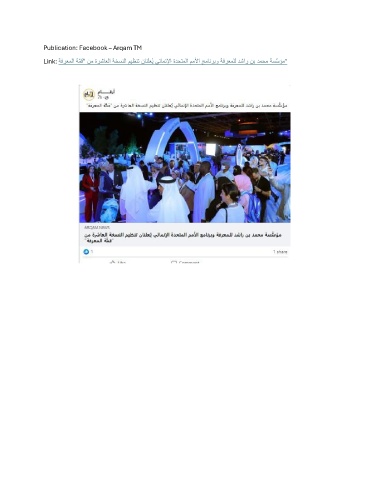 Publication: Facebook – Arqam TM Link: ةفرعملا ةَّمق" نم ةرشاعلا ةخسنلا ميظنت نانلعُي يئامنلإا ةدحتملا مملأا جمانربو ةفرعملل دشار نب دمحم ةسَّسؤم"