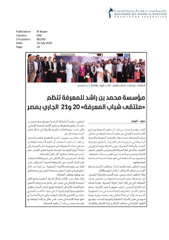 Publication: Al Bayan Country: UAE Circulation: 88,000 Date: 16 July 2025 Page: 19