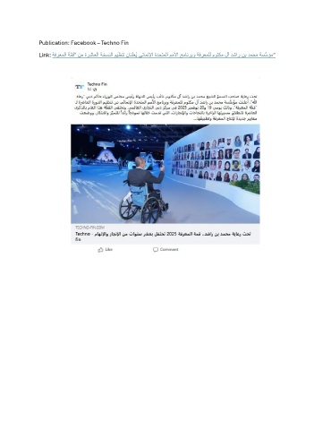 Publication: Facebook – Techno Fin Link: ةفرعملا ةَّمق“ نم ةرشاعلا ةخسنلا ميظنت نانلعُي يئامنلإا ةدحتملا مملأا جمانربو ةفرعملل موتكم لآ دشار نب دمحم ةسَّسؤم”