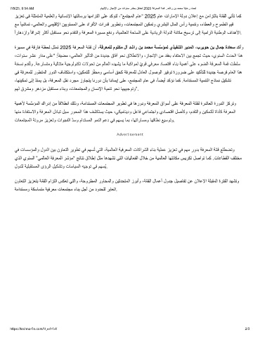 زﯾزﻌﺗ ﻲﻓ ﺔﻠﺛﻣﺗﻣﻟا ﺔﯾﻣﻠﻌﻟاو ﺔﯾﻧﺎﺳﻧﻹا ﺎﮭﺗﻟﺎﺳرﺑ ﺎﮭﻣازﺗﻟا ﻰﻠﻋ دﻛؤﺗﻟ ،”ﻊﻣﺗﺟﻣﻟا مﺎﻋ“ 2025 مﺎﻋ تارﺎﻣﻹا ﺔﻟود نﻼﻋإ ﻊﻣ نﻣازﺗﻟﺎﺑ ﺔﱠﻣﻘﻟا ﻲﺗﺄﺗ ﺎﻣﻛ