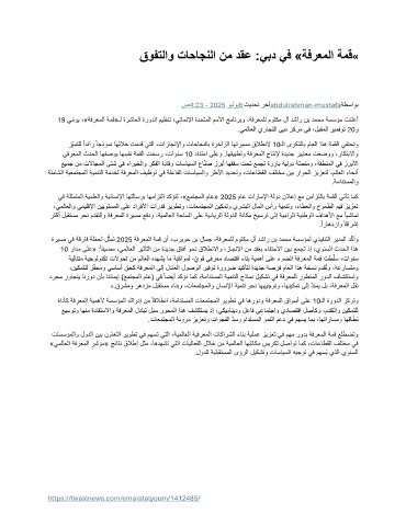 19 ي َ موي ،»ةفرعملا ةمق«ـل ةرشاعلا ةرودلا ميظنت ،يئامنلإا ةدحتملا مملأا جمانربو ،ةفرعملل موتكم لآ دشار نب دمحم ةسسؤم تنلعأ
