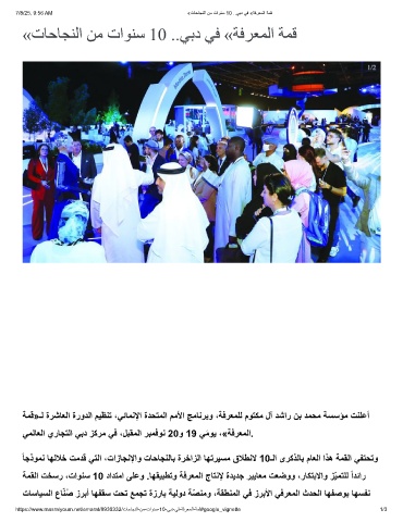 ﺔﻣﻗ»ـﻟ ةرﺷﺎﻌﻟا ةرودﻟا مﯾظﻧﺗ ،ﻲﺋﺎﻣﻧﻹا ةدﺣﺗﻣﻟا مﻣﻷا ﺞﻣﺎﻧرﺑو ،ﺔﻓرﻌﻣﻠﻟ موﺗﻛﻣ لآ دﺷار نﺑ دﻣﺣﻣ ﺔﺳﺳؤﻣ تﻧﻠﻋأ