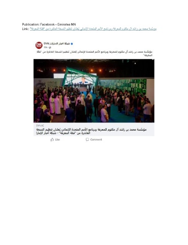 Publication: Facebook – Emirates NN Link: ”ةفرعملا ةَّمق“ نم ةرشاعلا ةخسنلا ميظنت نانلعُي يئامنلإا ةدحتملا مملأا جمانربو ةفرعملل موتكم لآ دشار نب دمحم ةسَّسؤم