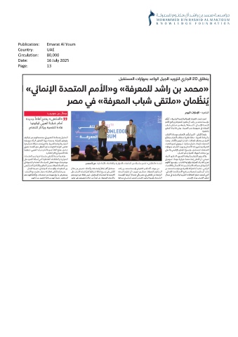 Publication: Emarat Al Youm Country: UAE Circulation: 80,000 Date: 16 July 2025 Page: 13
