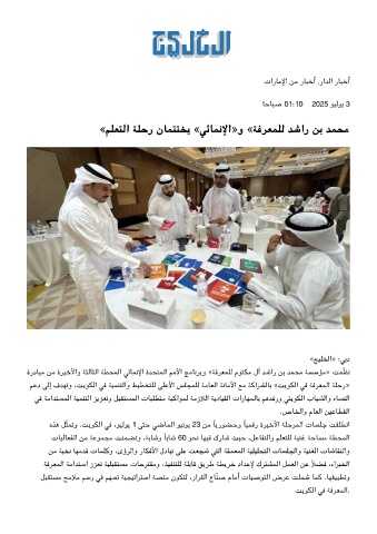 ةردﺎﺒﻣ ﻦﻣ ةﺮﻴﺧﻷاو ﺔﺜﻟﺎﺜﻟا ﺔﻄﺤﻤﻟا ﺋﺎﻤﻧﻹا ةﺪﺤﺘﻤﻟا ﻢﻣﻷا ﺞﻣﺎﻧﺮﺑو «ﺔﻓﺮﻌﻤﻠﻟ مﻮﺘﻣ لآ ﺪﺷار ﻦﺑ ﺪﻤﺤﻣ ﺔﺴﺳﺆﻣ» ﺖﻤّﻈﻧ