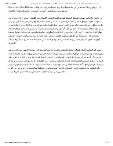 7/3/25, 10:33 AM “ﺔﯾرﺎﺑﺧﻹا لﺑوﻠﻏ ﺔﻛﺑﺷ – دﻐﻟا ةدﺎﻗ دادﻋﻹ ”تﯾوﻛﻟا ﻲﻓ ﺔﻓرﻌﻣﻟا ﺔﻠﺣر“ نﻣ ةرﯾﺧﻷا ﺔطﺣﻣﻟا نﺎﻣظﻧﯾ ”ﻲﺋﺎﻣﻧﻹا ةدﺣﺗﻣﻟا مﻣﻷا”و ”ﺔﻓرﻌﻣﻠﻟ دﺷار نﺑ دﻣﺣﻣ
