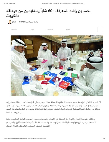 7/3/25, 10:33 AM «موﯾﻟا تارﺎﻣﻹا رﺎﺑﺧأ | «تﯾوﻛﻟا ﺔﻠﺣر» نﻣ نودﯾﻔﺗﺳﯾ ً ﺎﺑﺎﺷ 60 :«ﺔﻓرﻌﻣﻠﻟ دﺷار نﺑ دﻣﺣﻣ