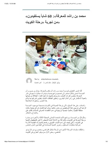 7/3/25, 10:36 AM «تﯾوﻛﻟا ﺔﻠﺣر» ﺔﺑرﺟﺗ نﻣ نودﯾﻔﺗﺳﯾ ً ﺎﺑﺎﺷ 60 :«ﺔﻓرﻌﻣﻠﻟ دﺷار نﺑ دﻣﺣﻣ»