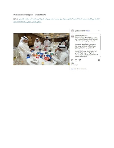 Publication: Instagram – Global News Link: ،يئامنلإا ةدحتملا مملأا جمانربو ةفرعملل دشار نب دمحم ةسسؤم نيب كرتشم ميظنتب "ةفرعملا ةلحر" ةردابم تيوكلا يف تمتُتخا لبقتسملا ةداق دادعإو يبرعلا بابشلا نيكمتل.