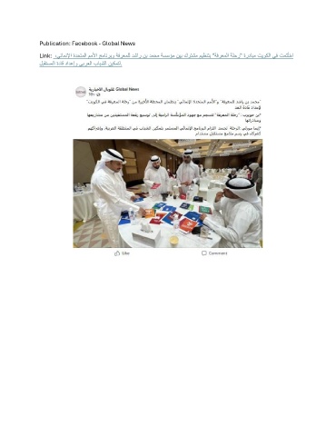 Publication: Facebook - Global News Link: ،يئامنلإا ةدحتملا مملأا جمانربو ةفرعملل دشار نب دمحم ةسسؤم نيب كرتشم ميظنتب "ةفرعملا ةلحر" ةردابم تيوكلا يف تمتُتخا لبقتسملا ةداق دادعإو يبرعلا بابشلا نيكمتل.