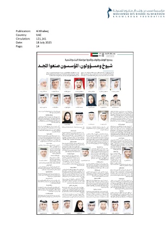 Publication: Al Khaleej Country: UAE Circulation: 121,141 Date: 18 July 2025 Page: 14