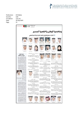 Publication: Al Khaleej Country: UAE Circulation: 121,141 Date: 18 July 2025 Page: 15