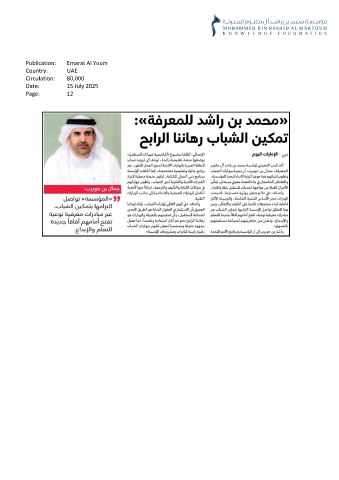 Publication: Emarat Al Youm Country: UAE Circulation: 80,000 Date: 15 July 2025 Page: 12