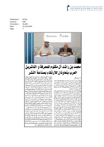 Publication: Al Fajr Country: UAE Circulation: 34,596 Date: 12 July 2025 Page: 7