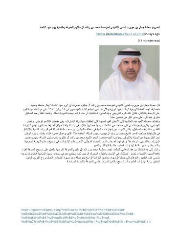 ةينطو ةطحم لثمُي ”داحتلاا دهع موي“ نأ ةفرعملل موتكم لآ دشار نب دمحم ةسسؤمل يذيفنتلا ريدملا بريوح نب لامج ةداعس لاق