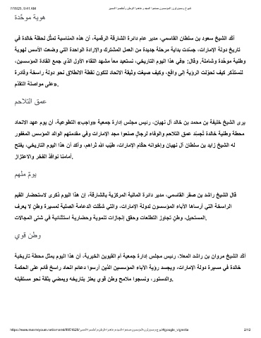 ﺢﺗﻔﯾ ،ﻲﺧﯾرﺎﺗﻟا موﯾﻟا اذھ نأ دﻛأو ،مھارﺛ ﷲ بّﯾط ،تارﺎﻣﻹا مﺎّﻛﺣ ﮫﻧاوﺧإو نﺎﯾﮭﻧ لآ نﺎطﻠﺳ نﺑ دﯾاز ﺦﯾﺷﻟا ﮫﻟ