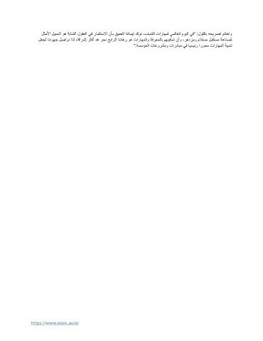 لثملأا ليبسلا وه ةباشلا لوقعلا يف رامثتسلاا نأب قيمعلا انناميإ دكؤن ،بابشلا تاراهمل يملاعلا مويلا يف“ :لوقلاب هحيرصت متتخاو