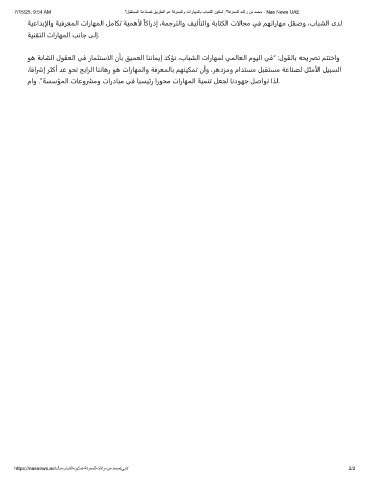 7/15/25, 9:54 AM "لﺑﻘﺗﺳﻣﻟا ﺔﻋﺎﻧﺻﻟ ﻖﯾرطﻟا وھ ﺔﻓرﻌﻣﻟاو تارﺎﮭﻣﻟﺎﺑ بﺎﺑﺷﻟا نﯾﻛﻣﺗ :"ﺔﻓرﻌﻣﻠﻟ دﺷار نﺑ دﻣﺣﻣ - Nas News UAE