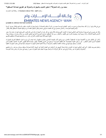 7/15/25, 9:55 AM UAE News - لﺑﻘﺗﺳﻣﻟا ﺔﻋﺎﻧﺻﻟ ﻖﯾرطﻟا وھ ﺔﻓرﻌﻣﻟاو تارﺎﮭﻣﻟﺎﺑ بﺎﺑﺷﻟا نﯾﻛﻣﺗ :"ﺔﻓرﻌﻣﻠﻟ دﺷار نﺑ دﻣﺣﻣ" - تارﺎﻣﻹا رﺎﺑﺧأ
