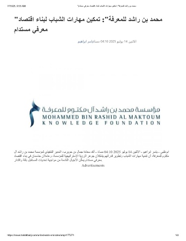 7/15/25, 9:55 AM "مادﺗﺳﻣ ﻲﻓرﻌﻣ دﺎﺻﺗﻗا ءﺎﻧﺑﻟ بﺎﺑﺷﻟا تارﺎﮭﻣ نﯾﻛﻣﺗ :"ﺔﻓرﻌﻣﻠﻟ دﺷار نﺑ دﻣﺣﻣ