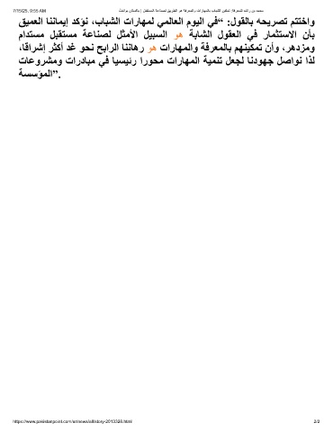 ﻖﯿﻤﻌﻟا ﺎﻨﻧﺎﻤﯾإ ﺪﻛﺆﻧ ،بﺎﺒﺸﻟا تارﺎﮭﻤﻟ ﻲﻤﻟﺎﻌﻟا مﻮﯿﻟا ﻲﻓ“ :لﻮﻘﻟﺎﺑ ﮫﺤﯾﺮﺼﺗ ﻢﺘﺘﺧاو