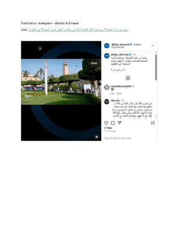 Publication: Instagram – Akhbar Al Emarat Link: "ةرهاقلا يف "ةفرعملا بابش ىقتلم" نامظني يئامنلإا ةدحتملا مملأا جمانربو "ةفرعملل دشار نب دمحم