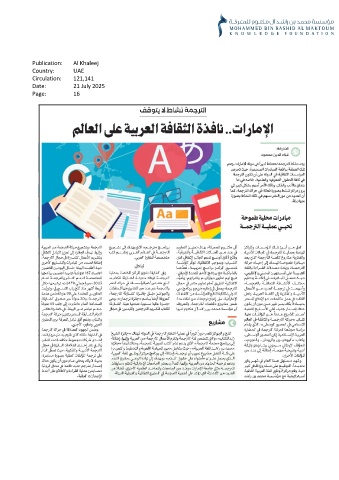 Publication: Al Khaleej Country: UAE Circulation: 121,141 Date: 21 July 2025 Page: 16