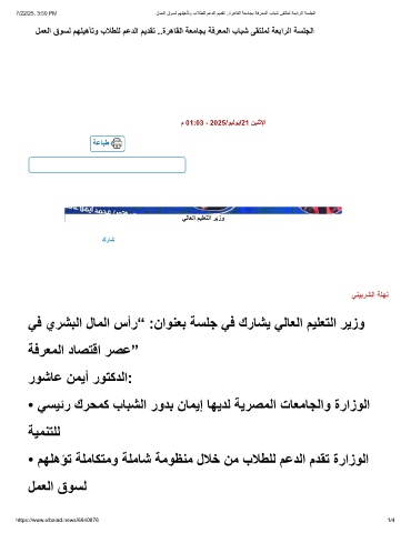 7/22/25, 3:50 PM لﻣﻌﻟا قوﺳﻟ مﮭﻠﯾھﺄﺗو بﻼطﻠﻟ مﻋدﻟا مﯾدﻘﺗ ..ةرھﺎﻘﻟا ﺔﻌﻣﺎﺟﺑ ﺔﻓرﻌﻣﻟا بﺎﺑﺷ ﻰﻘﺗﻠﻣﻟ ﺔﻌﺑارﻟا ﺔﺳﻠﺟﻟا