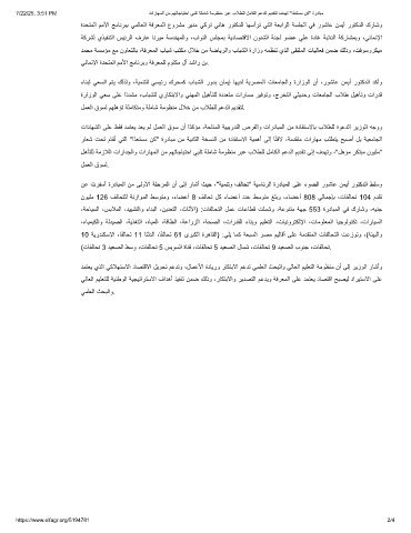 ةرازوﻟا ﻲﻌﺳ ﻰﻠﻋ اًددﺷﻣ ،بﺎﺑﺷﻠﻟ يرﺎﻛﺗﺑﻻاو ﻲﻧﮭﻣﻟا لﯾھﺄﺗﻠﻟ ةددﻌﺗﻣ تارﺎﺳﻣ رﯾﻓوﺗو ،جرﺧﺗﻟا ﻲﺛﯾدﺣو تﺎﻌﻣﺎﺟﻟا بﻼط لﯾھﺄﺗو تاردﻗ