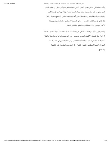 https://www.masrawy.com/news/news_egypt/details/2025/7/21/2823169/ﺔﯾﻣﻧﺗﻠﻟ-ﻲﺳﯾﺋر-كرﺣﻣ-بﺎﺑﺷﻟا-ﻲﻟﺎﻌﻟا-مﯾﻠﻌﺗﻟا-رﯾزو-ﺔﻌﺑارﻟا-ﺔﺧﺳﻧﻟا-ﺔﻓرﻌﻣﻟا-بﺎﺑﺷ-ﻰﻘﺗﻠﻣ 4/4
