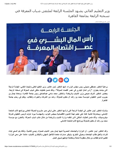 7/22/25, 3:52 PM ﺔﻣﻷا توﺻ | ةرھﺎﻘﻟا ﺔﻌﻣﺎﺟﺑ ﺔﻌﺑارﻟا ﮫﺗﺧﺳﻧ ﻲﻓ ﺔﻓرﻌﻣﻟا بﺎﺑﺷ ﻰﻘﺗﻠﻣﻟ ﺔﻌﺑارﻟا ﺔﺳﻠﺟﻟا دﮭﺷﯾ ﻲﻟﺎﻌﻟا مﯾﻠﻌﺗﻟا رﯾزو