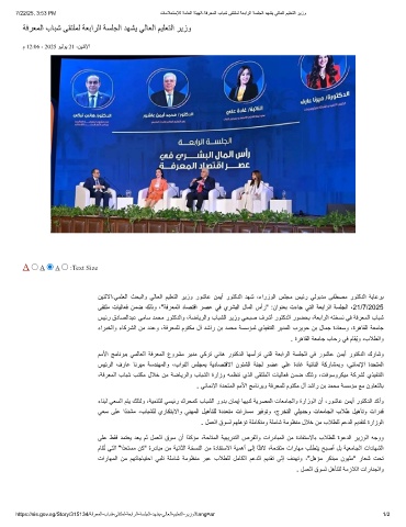 https://sis.gov.eg/Story/315134/ﺔﻓرﻌﻣﻟا-بﺎﺑﺷ-ﻰﻘﺗﻠﻣﻟ-ﺔﻌﺑارﻟا-ﺔﺳﻠﺟﻟا-دﮭﺷﯾ-ﻲﻟﺎﻌﻟا-مﯾﻠﻌﺗﻟا-رﯾزو?lang=ar 1/2