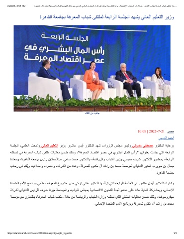 ةﺮھﺎﻘﻟا ﺔﻌﻣﺎﺠﺑ ﺔﻓﺮﻌﻤﻟا بﺎﺒﺷ ﻰﻘﺘﻠﻤﻟ ﺔﻌﺑاﺮﻟا ﺔﺴﻠﺠﻟا ﺪﮭﺸﯾ ﻲﻟﺎﻌﻟا ﻢﯿﻠﻌﺘﻟا ﺮﯾزو