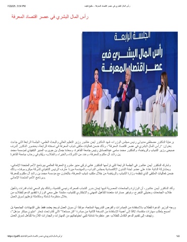 فﺮﺷأ رﻮﺘﻛﺪﻟا رﻮﻀﺤﺑ ،ﺔﻌﺑاﺮﻟا ﮫﺘﺨﺴﻧ ﻲﻓ ﺔﻓﺮﻌﻤﻟا بﺎﺒﺷ ﻰﻘﺘﻠﻣ تﺎﯿﻟﺎﻌﻓ ﻦﻤﺿ ﻚﻟذو ،”ﺔﻓﺮﻌﻤﻟا دﺎﺼﺘﻗا ﺮﺼﻋ ﻲﻓ يﺮﺸﺒﻟا لﺎﻤﻟا سأر“ :ناﻮﻨﻌﺑ