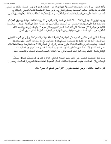 ﻲﻌﺴﻟا ﻢﺘﯾ ﻚﻟﺬﻟو ،ﺔﯿﻤﻨﺘﻠﻟ ﻲﺴﯿﺋر كﺮﺤﻤﻛ بﺎﺒﺸﻟا روﺪﺑ نﺎﻤﯾإ ﺎﮭﯾﺪﻟ ﺔﯾﺮﺼﻤﻟا تﺎﻌﻣﺎﺠﻟاو ةرازﻮﻟا نأ رﻮﺷﺎﻋ ﺪﻛأو