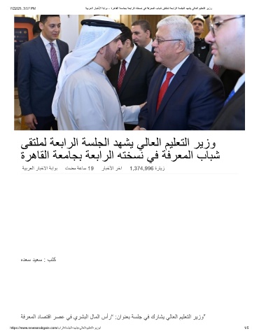 7/22/25, 3:57 PM ﺔﯾﺑرﻌﻟا رﺎﺑﺧﻷا ﺔﺑاوﺑ – ةرھﺎﻘﻟا ﺔﻌﻣﺎﺟﺑ ﺔﻌﺑارﻟا ﮫﺗﺧﺳﻧ ﻲﻓ ﺔﻓرﻌﻣﻟا بﺎﺑﺷ ﻰﻘﺗﻠﻣﻟ ﺔﻌﺑارﻟا ﺔﺳﻠﺟﻟا دﮭﺷﯾ ﻲﻟﺎﻌﻟا مﯾﻠﻌﺗﻟا رﯾزو
