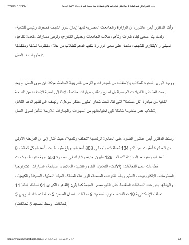 ،ﺔﯾﻣﻧﺗﻠﻟ ﻲﺳﯾﺋر كرﺣﻣﻛ بﺎﺑﺷﻟا رودﺑ نﺎﻣﯾإ ﺎﮭﯾدﻟ ﺔﯾرﺻﻣﻟا تﺎﻌﻣﺎﺟﻟاو ةرازوﻟا نأ ،روﺷﺎﻋ نﻣﯾأ روﺗﻛدﻟا دﻛأو