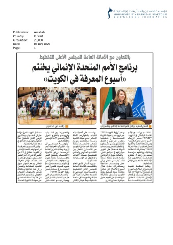 Publication: Assabah Country: Kuwait Circulation: 20,000 Date: 03 July 2025 Page: 1
