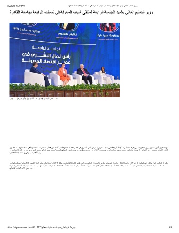 7/22/25, 4:00 PM ةرھﺎﻘﻟا ﺔﻌﻣﺎﺟﺑ ﺔﻌﺑارﻟا ﮫﺗﺧﺳﻧ ﻲﻓ ﺔﻓرﻌﻣﻟا بﺎﺑﺷ ﻰﻘﺗﻠﻣﻟ ﺔﻌﺑارﻟا ﺔﺳﻠﺟﻟا دﮭﺷﯾ ﻲﻟﺎﻌﻟا مﯾﻠﻌﺗﻟا رﯾزو
