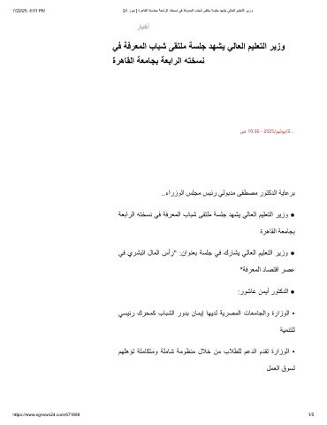 7/22/25, 4:01 PM 24 زوﯾﻧ | ةرھﺎﻘﻟا ﺔﻌﻣﺎﺟﺑ ﺔﻌﺑارﻟا ﮫﺗﺧﺳﻧ ﻲﻓ ﺔﻓرﻌﻣﻟا بﺎﺑﺷ ﻰﻘﺗﻠﻣ ﺔﺳﻠﺟ دﮭﺷﯾ ﻲﻟﺎﻌﻟا مﯾﻠﻌﺗﻟا رﯾزو
