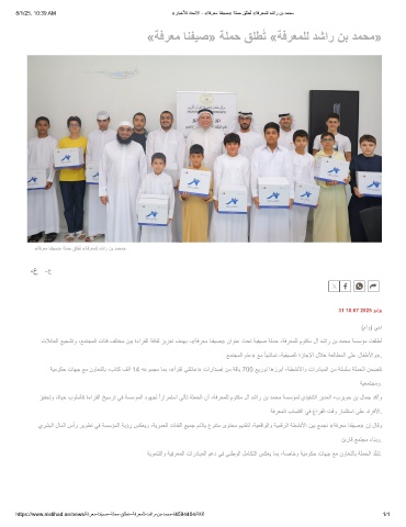 تﻼﺋﺎﻌﻟا ﻊﯾﺟﺷﺗو ،ﻊﻣﺗﺟﻣﻟا تﺎﺋﻓ فﻠﺗﺧﻣ نﯾﺑ ةءارﻘﻟا ﺔﻓﺎﻘﺛ زﯾزﻌﺗ فدﮭﺑ ،«ﺔﻓرﻌﻣ ﺎﻧﻔﯾﺻ» ناوﻧﻋ تﺣﺗ ﺔﯾﻔﯾﺻ ﺔﻠﻣﺣ ،ﺔﻓرﻌﻣﻠﻟ موﺗﻛﻣ لآ دﺷار نﺑ دﻣﺣﻣ ﺔﺳﺳؤﻣ تﻘﻠطأ