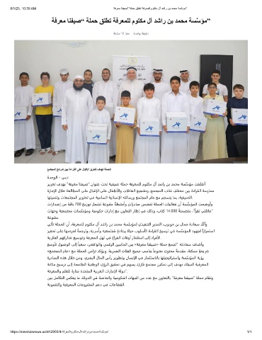 ﺰﻳﺰﻌﺗ فﺪﻬﺑ ”ﺔﻓﺮﻌﻣ ﺎﻨﻔﻴﺻ“ ناﻮﻨﻋ ﺖﺤﺗ ﺔﻴﻔﻴﺻ ﺔﻠﻤﺣ ﺔﻓﺮﻌﻤﻠﻟ مﻮﺘﻜﻣ لآ ﺪﺷار ﻦﺑ ﺪﻤﺤﻣ ﺔﺴﱠﺳﺆﻣ ﺖﻘﻠﻃأ