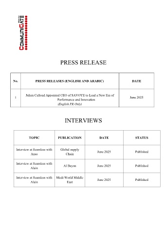 No. PRESS RELEASES (ENGLISH AND ARABIC) DATE