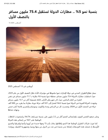 8/14/25, 9:55 AM لوﻷا فﺻﻧﻟﺎﺑ رﻓﺎﺳﻣ نوﯾﻠﻣ 75.4 لﺑﻘﺗﺳﺗ ﺔﻟودﻟا تارﺎطﻣ .. %5 وﻣﻧ ﺔﺑﺳﻧﺑ - Nas News UAE