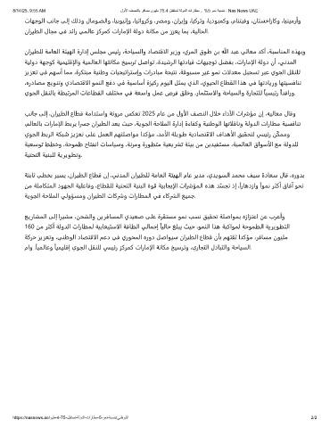 8/14/25, 9:55 AM لوﻷا فﺻﻧﻟﺎﺑ رﻓﺎﺳﻣ نوﯾﻠﻣ 75.4 لﺑﻘﺗﺳﺗ ﺔﻟودﻟا تارﺎطﻣ .. %5 وﻣﻧ ﺔﺑﺳﻧﺑ - Nas News UAE