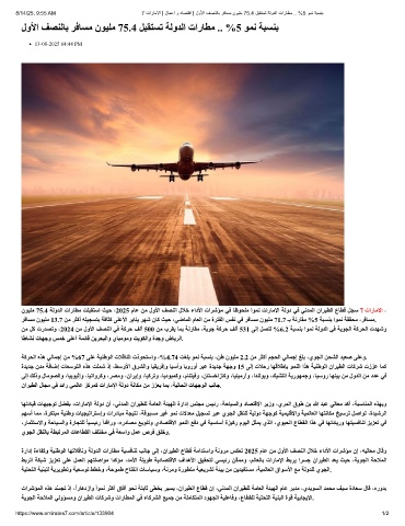 8/14/25, 9:55 AM 7 تارﺎﻣﻻا | لﺎﻣﻋا و دﺎﺻﺗﻗا | لوﻷا فﺻﻧﻟﺎﺑ رﻓﺎﺳﻣ نوﯾﻠﻣ 75.4 لﺑﻘﺗﺳﺗ ﺔﻟودﻟا تارﺎطﻣ .. %5 وﻣﻧ ﺔﺑﺳﻧﺑ