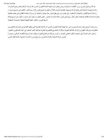 ًارﺪﺼﻣو ،ﻲﻨطﻮﻟا دﺎﺼﺘﻗﻼﻟ ً ﺎﯿﺴﯿﺋر ً ﺎﻤﻋاد ﻞﻈﯿﺳ ناﺮﯿﻄﻟا عﺎﻄﻗ نﺄﺑ ﮫﺘﻘﺛ ﻦﻋ بﺮﻋأو .ﺪﯾاﺰﺘﻤﻟا ﻲﻤﻟﺎﻌﻟا ﺐﻠﻄﻟا بﺎﻌﯿﺘﺳا ﻰﻠﻋ ﺔﻟوﺪﻟا ةرﺪﻗ زﺰﻌﺘﺳو